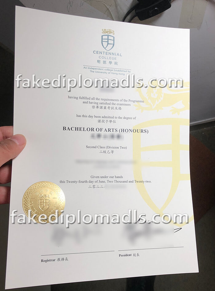 How to get a fake Centennial College (Hong Kong) degree certificate online.