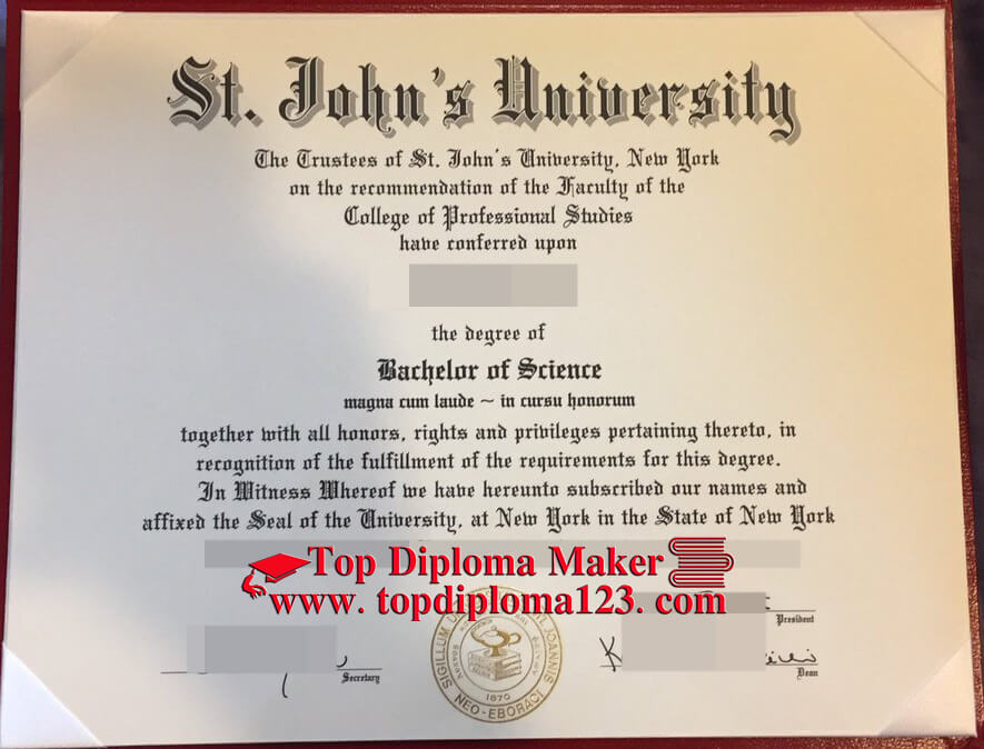 St. John's University fake diploma sample, Buy fake diploma USA. Buy diploma online. St. John’s University is a four-year comprehensive university with a research institute. It consists of the College of Liberal Arts and Sciences (St. John's College of Liberal Arts and Sciences), the School of Law, and the College of Pharmacy and Allied Health Professions. ), the School of Business (Peter J. Tobin College of Business), the School of Education (The School of Education), and the College of Professional Studies (College of Professional Studies); there is also a seminary. According to the "2011 American University Survey Report ("America's Best Colleges, 2011")" published by the more authoritative American "US News & World Report", St. John's University received more than 330 million Donations in US dollars; the tuition fee for a school year is approximately US$33,000, and the cost of accommodation and food at the school is approximately US$14,000.
